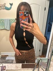 A fun top for a day or night out! Could size down if needed since it does stretch