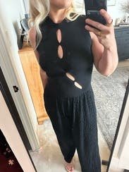 This top was SO flattering and I felt like a hot piece of ass whenever I wore it. For those with larger chests, it’s a perfect balance of showing off the girls while not being super scandalous. The ribbing in the fabric is perfect to hug you; not tightly; but feels great on!