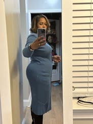 fitted sweater dress worn to work.