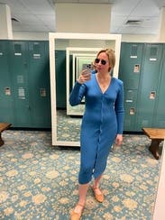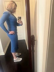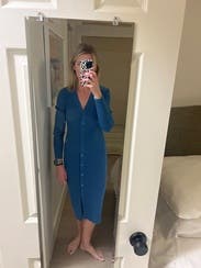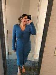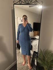 Wore this midi dress for my birthday for a dinner and girls night out. The color was beautiful and the rib material was extremely flattering. No gaping in between the buttons and the length was perfect. I’d definitely rent this one again