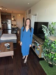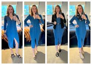 This dress is such a gorgeous shade of blue. I wore it with a few extra buttons open for date night and multiple times to work. I found it to run small. I ordered both an XS and S and mostly wore the S. Even then I had to use fashion tape to prevent gapping between buttons. Super comfortable though. Was very tempted to buy but the size that fit best had minor damage so the conversion cost didn't seem worth it. Highly recommend this rental!