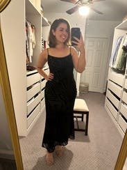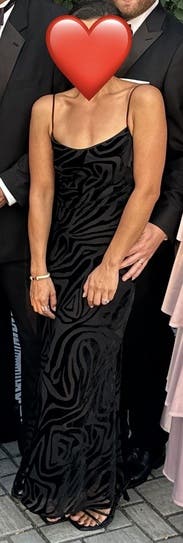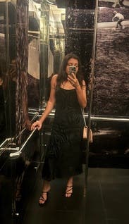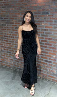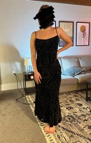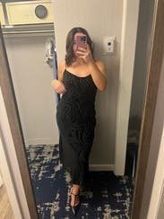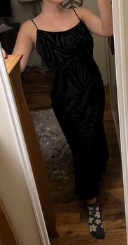 Loved this dress! Great black dress with a slight pattern and texture. The cut of the dress was so flattering for a slip dress. I’m not very busty so it fit great for me