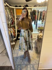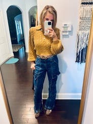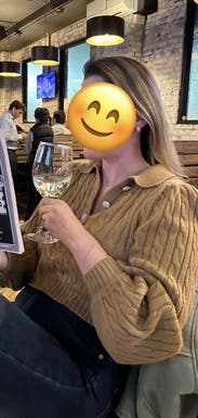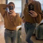 I’ve worn this sweater with everything and so many times. I LOVE it. It’s so comfortable, soft, and cute. It elevates everyday looks and keeps edgy ones a little more grounded if you’re in a spot where you need that. The compliments pour in every time I wear it, and I sure have worn it a lot. The ONLY thing I would say about it is that the buttons are very hard to get open and closed, and without opening the top button, it can be hard to get on and off. If it would ever be a reasonable price, I’d snap it up in a heartbeat. And I really do need to send it back, but because of its versatility, I keep finding it to be the most perfect option for something coming up.