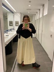 And/or a fuller skirt. Fun to wear, did check the Disney pauper to princess vibe. Paired with jean jacket and sneaks to make it work for a casual night.
