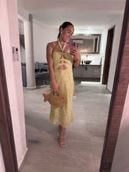 Absolutely loved this dress, was a little worried with the cutouts around my boobs but with a little boob tape was able to make sure everything stayed in place. Very light material perfect for summer date night.
