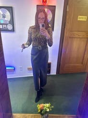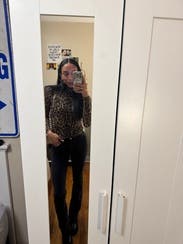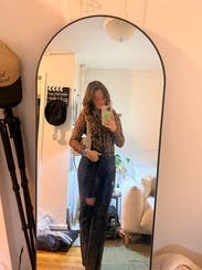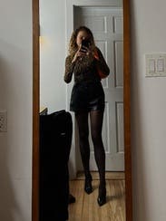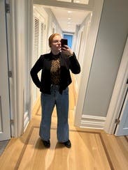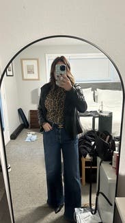 Fits well true to size feels comfortable - highly recommend for a fall outfit!