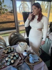 This dress absolutely hit the vibe of my winter themed Bridal Shower! It is super comfortable and flattering. The fabric is stretchy but also form fitting. I do recommend sizing up if you have a larger chest, otherwise it fits perfectly.