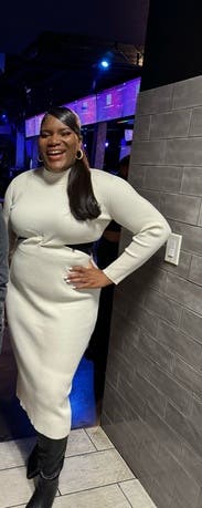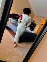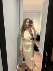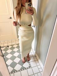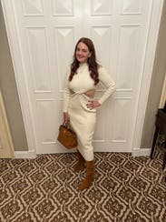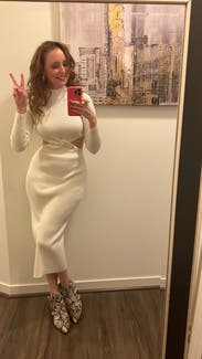 Favorite dress ever! Got so many compliments and I bought it! Sexy cut out, but so classy and beautiful and warm! Obsessed!!