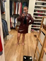 The Ronny Kobo x RTR Patent Faux Leather Jacket is a bold, cropped outerwear piece that features a glossy patent finish and a structured silhouette. Pair this statement jacket with the matching mini skirt or layer it over a sleek black dress and tall boots.