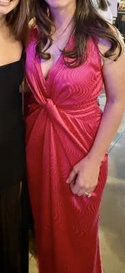 Great bright bridesmaid dress. Flowy flattering and fun. Needed to pin the chest a little.