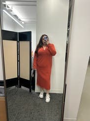 I would have bought this dress if I hadn't just bought an orange dress last month. Can only wear so many orange dresses in the rotation. But this was very flattering in every way. Loved the length.