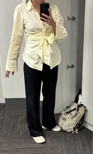 This is such a cute and fun button down. If you’re a corp girlie who likes clothes she can wear to both the office and happy hours this blouse is perfect! The tie makes it feel like it’s not just another button down that you already have in your closet