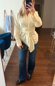 I'm obsessed with this top!! It's so versatile and I love the color. I may need to buy it. The tie gives it a cool girl vibe that's such a good update to a classic button down. Could be styled more open for the weekend or more closed up for a casual office!