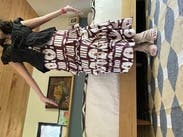 This is a very nice set. I like it together, but it would go just as nicely as two separate pieces. It is just a little tight and you could size up one size. It has a cute little cultural flare to it, but it’s not overstated and it can be worn almost anywhere.