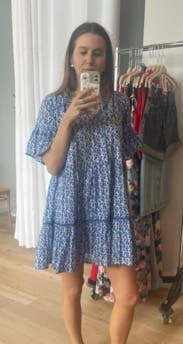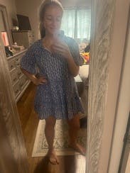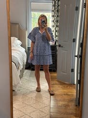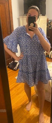 I loved this easy little dress. Nice print and very soft and light weight for a Caribbean vacation. Wore over a bathing suit from breakfast to pool to dinner.