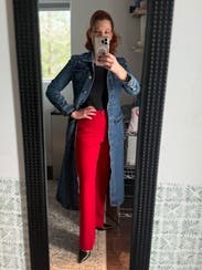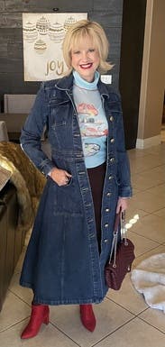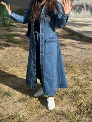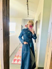 I loved this jean coat. Wore as a light vacation coat and random strangers said they loved it. I wore it as a a layer (like a blazer) over various outfits but note it’s warmer than you think and quite heavy.