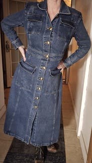 It can be a dress or a coat and is very well made and unique. However it arrived with the pocket flaps refusing to lay flat and the fabric is very stiff. I wasn’t willing to go through the hassle of trying to get them to lay correctly so I didn’t wear it