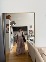 the unique aspects of this dress make it SO fun to wear. It's understated, but soooo comfortable. the structure made me feel like a princess when I walked, the way the skirt billowed. it's a unique take on a familiar silhouette. definitely boob-y, so fashion tape/pasties/etc. are welcomed. but I love the open top of this dress. I wore it so many places - a one-year-old's birthday party, the MoMA, a boat trip, and also just out and about.