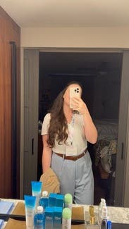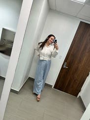 Cute linen blue pants for summer work days. Ordered 1 size below my usual and they were still a little big so definitely size down 1-2 sizes