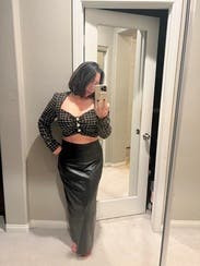 Loved how the skirt fit. The length fell longer on me than it was probably intended to fall, but I still thought the skirt was flattering. I loved the edginess of the material & would rent again.