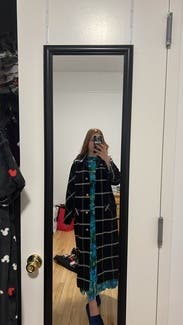 This coat is gorgeous! Love the print and the quality of the wool. Super soft. It’s maybe too long on me but I like the drama. I sized down which is good for me.