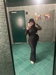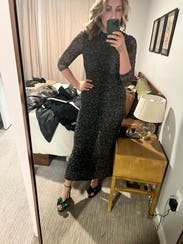 I loved this dress. For shorter gals, it's more of a maxi. It's form fitting to the body, but has a lot of stretch and was really comfy. I love the mesh. Sexy but modest at the same time.