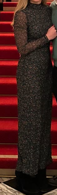 Wore this for a fancy dinner in Paris with a black slip underneath. Loved it but def think I could have sized down since it had a lot of stretch