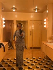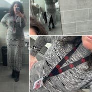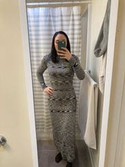 Loved this dress! Made me look skinny >>optical illusion<< with the lines of the pattern. Will absolutely rent again.