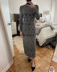 Love, love 💕 this heavy body hugging sweater dress. With the right shapewear thus dress is both stunningly sexy and boardroom professional. I will rent again.