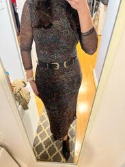 Rented this dress for Thanksgiving and loved it: it's flattering, fashionable and easy to style (barely requires anything, I wore with boots and fun earrings). I was tempted to buy it during the holiday sales!