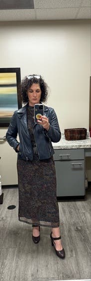 I didn’t think I would like this dress but it worked well for two different dinner dates. I wore it with heeled booties
