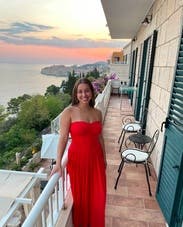 Much more comfortable than I expected. I haven’t worn strapless anything since I was a C cup and I was very pleased that I didn’t have to tug on this all day to keep it up on my bust! Wore for a long walking day in Nantucket and it dried very quickly after some light showers on the ferry ride. I wasn’t in love with the jersey fabric when it arrived, but it turned out to be perfect for keeping dry all day. I dressed it down with a denim jacket and chunky sandals for daywear, but could absolutely see it dressed up for a date night.