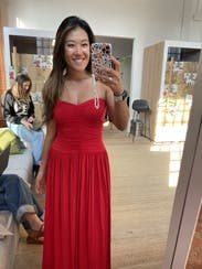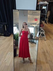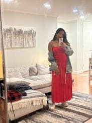 I wore this to a rehearsal dinner and it was perfect! The red color is even more vibrant in person and it fit like a glove. Definitely recommend this to anyone who is hesitant!!