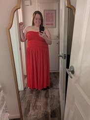 This dress was so flattering - wore for a formal dinner on vacation and loved it. I sized down so it would stay up better and it fit perfectly.