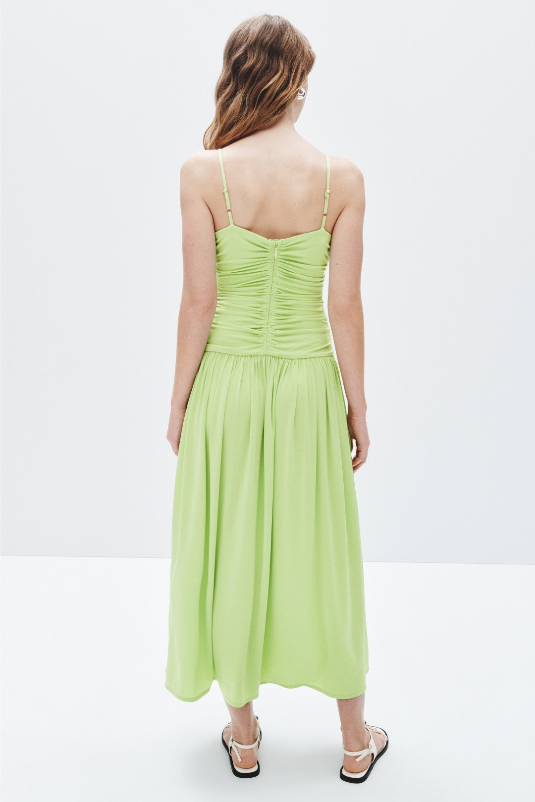 The Rosetta Getty x Rent the Runway Sweetheart Ruched Dress brings soft structure with its gathered bodice and fluid silhouette. Pair it with strappy heels and sculptural earrings for an effortless evening ensemble.