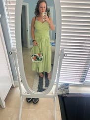 This dress is so comfortable and flattering. I wore it to a picnic and got so many compliments. Paired well with electric red lipstick and coral sandals.