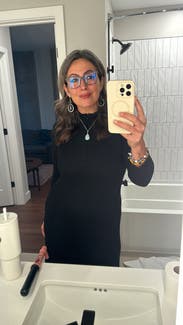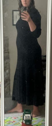 Wore constantly for work, events, dinners, etc. at 30-34 weeks pregnant. Would have kept if it didn't get so warm out!! The dress was SO flattering and I got so many compliments. The flare also helped make my bump not sooo aggressively large at this stage which was nice.