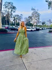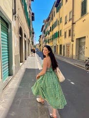 This dress was an incredibly well made, beautiful, high quality sundress. The gingham design was actually more of a sand and green rather than a white green gingham like it appears in some photos but I honestly preferred it that way. The fabric has beautiful sheer window details, and the dress itself is so adjustable it’s easy to make it fit how you want. It is a little heavier but that also allows it to be dressed up or more casually. Highly recommend!