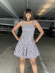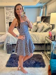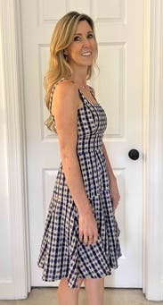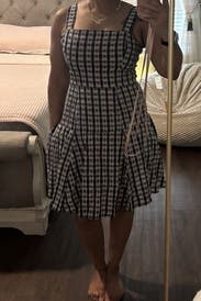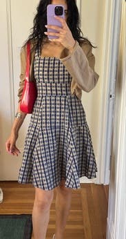 Rosie Assoulin's Skater Dress brings a playful twist to summer dressing with its vibrant blue plaid pattern and flared silhouette. Pair it with crisp white sneakers and a woven tote for a fresh daytime look.