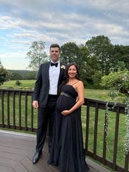Great maternity wedding guest dress. I added a small tie/ribbon so that you could see the bump. A little long but wore very tall platform heels.