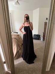 Perfect for a black tie optional wedding in 95 degree Austin heat. Needs to be dressed up with accessories and is super comfy and flows. Got compliments but I will say it doesn't photograph amazingly because there's a lot of fabrics. Straps are adjustable which is good would size down if you're in between sizes.