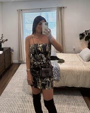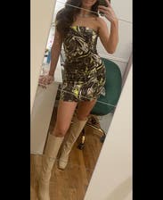 Loved this little dress! Wore it to an EDM event with black boots. The quality of the fabric is superb. Beautiful print. A little tight on the chest for me but managed to zip.