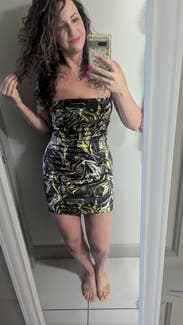 This dress is short, sexy and perfect for a GNO. It fit like a glove although the top was a little tight so may not be best for those blessed with bra size D or larger and may be too short for taller gals.