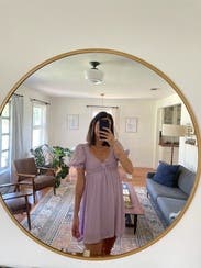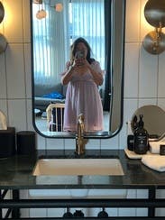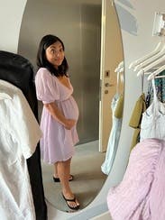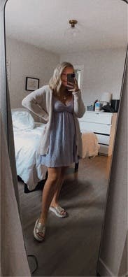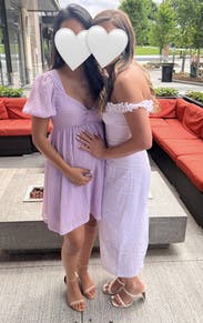 Wore this to my baby shower while fully pregnant. Was worried about finding a dress that would fit around my growing body, and this worked out perfectly.