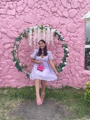 I often have a problem feeling self conscious of my belly when I wear dresses. The high waist and flowy skirt made me feel free and comfortable even after eating and drinking while on vacation. The dress is so fun and the pastel color is lovely.