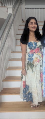 This is a gorgeous dress - the print is floral, but it's made using an Indian print called "bandhani," which is such a beautiful cross-cultural design. But it definitely runs small. The only way I could get it on was to keep it zipped up over the seam and somehow get it on. The straps were slightly tight and I don't have large boobs or shoulders, so I don't think it would fit on anyone who does. I had it on for ~4 hours for a bridal shower, but couldn't have worn it for longer.