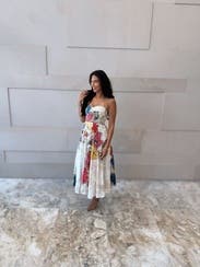 I so wish this dress worked but something about the corset cut of the chest isn’t right. The fit was super snug and I’m flat chested so I don’t know how anyone bigger could squeeze in. Additionally, the “cups” of the dress didn’t line up right. Otherwise the print and fabric are stunning and it’s a really elevated sundress !