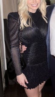 Wore this to an engagement party that was celestial themed and got a ton of compliments. Wore it with the silver bag and a silver pair of heels. I did find the dress a little short length wise..