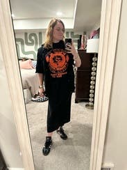 you like a cool girl vibe, an oversized fit (xs was still oversized BUT I signed up for it!), and getting compliments on well-designed pieces. I wore this to work AND went on a lunch date today—versatile much?? And moving around in it outside wasn’t bad in high 79 temps with windy and humidity.