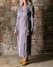 The pleated texture and bit of sparkle gave this dress a luxury feel. As many had mentioned I pinned the front in order to prevent it from falling open. Runs slightly big, I went with the small. Overall very comfortable and pretty!